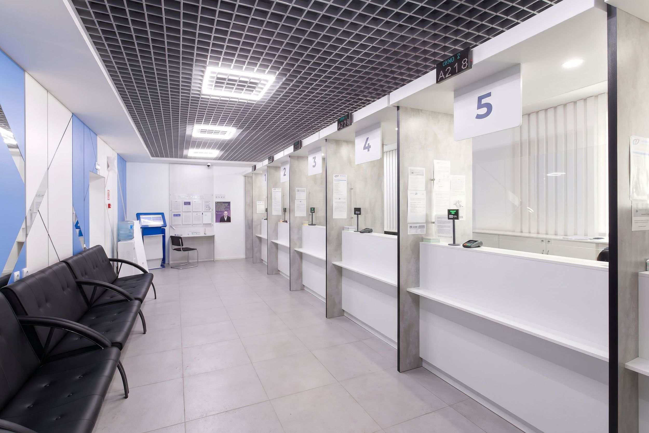 В отделке использованы износостойкие и практичные материалы: МДФ, ЛДСП, акрил, ПВХ. Для графики — УФ-печать с высокой детализацией и устойчивостью к выцветанию.Навигационная система построена по принципу быстрой ориентации: крупная типографика, контрастные цветовые акценты и логичное зонирование пространства.