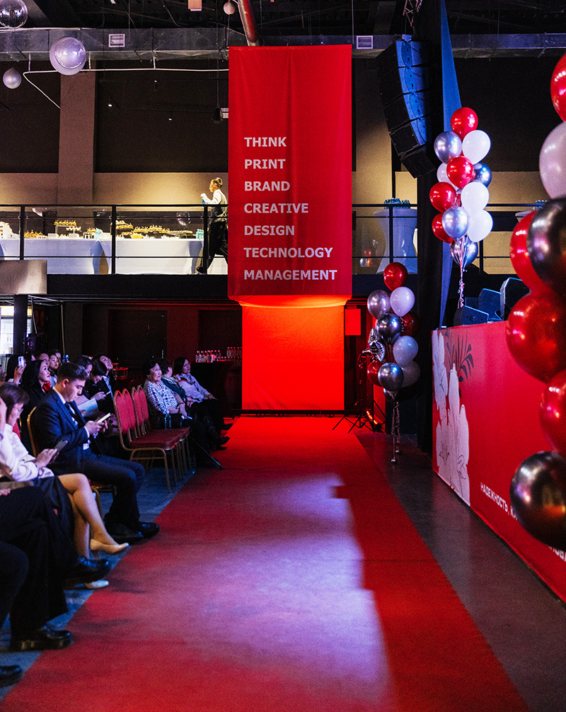 Гостей встречала красная дорожка, сцена была оформлена в общем стиле, а на экране транслировались визуальные заставки, поддерживающие концепцию. Каждый гость также получил брендированные подарки.